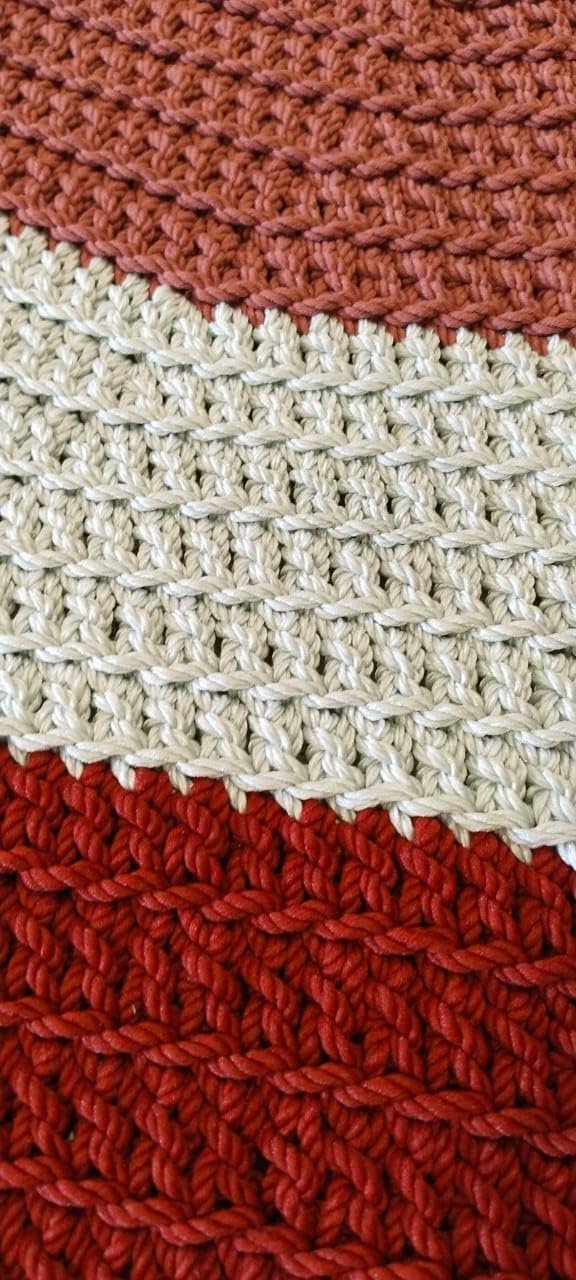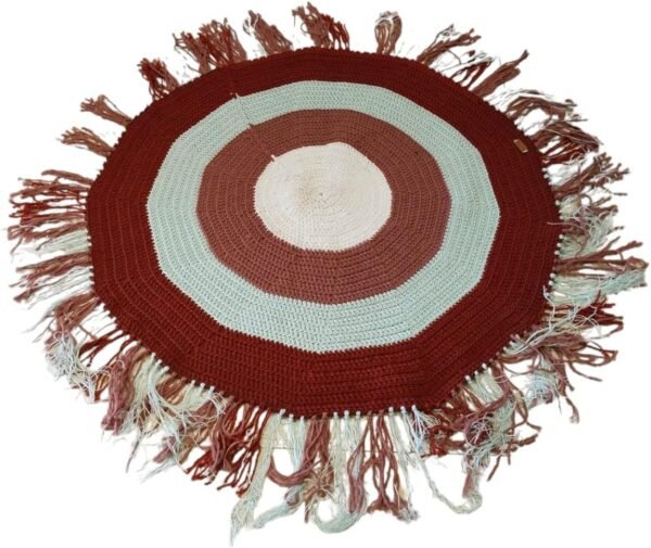 سجادة كروشية دائرية مقاس 120×120 سم صناعة يدوية 100% التصوير على الطبيعة . وزن المنتج 2 كيلو 250 جرام (120×120 cm)، متعدد الالوان، مزيج من الصوف